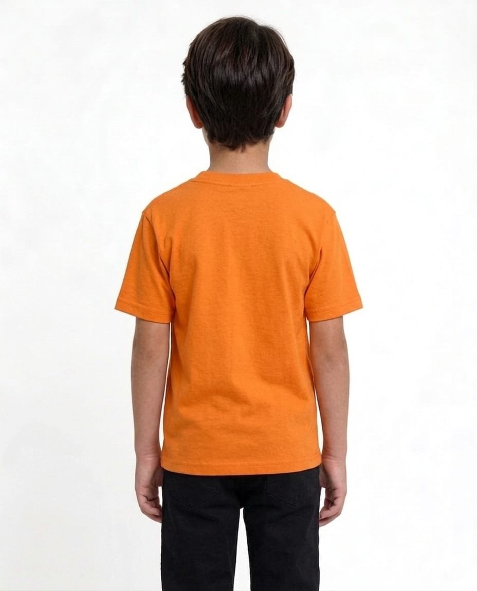 Orange round neck 180 GSM cotton T-shirt for kids, made from premium quality breathable cotton fabric that is soft and gentle on delicate skin, designed to provide superior comfort for all-day wear, 180 GSM fabric ensures durability while maintaining a lightweight and airy feel, classic round neck design offers a clean and timeless casual look, vibrant orange color adds a bold and energetic touch to kids’ wardrobe, perfect for school, playtime, outings or relaxing at home, smooth texture helps prevent skin irritation and keeps kids comfortable throughout the day, easy to pair with jeans, shorts or joggers for a stylish casual outfit, colorfast fabric retains its brightness even after multiple washes, reinforced stitching enhances durability for active kids, skin-friendly and hypoallergenic material suitable for sensitive skin, available in multiple sizes for growing children, easy to maintain with regular machine wash, quick drying and low maintenance, suitable for both boys and girls, a perfect combination of comfort, style and practicality, an essential addition to everyday kids fashion