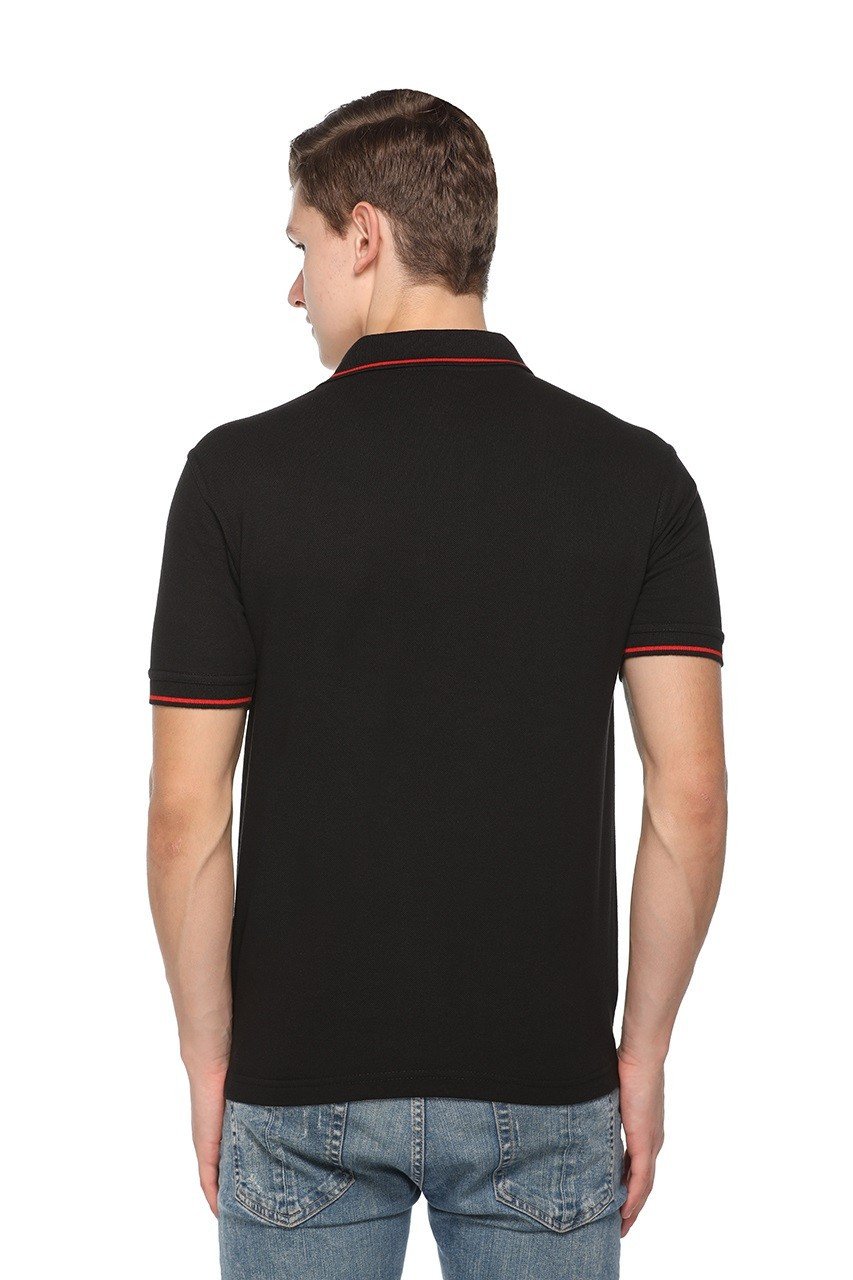 The classic black base color paired with red ribbed single tipping on the collar and sleeves creates a sporty yet refined look that makes a bold style statement. Its regular fit offers freedom of movement while maintaining a structured and polished appearance.