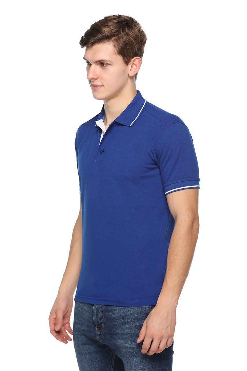 The rich royal blue color paired with single tipping on the collar and sleeves adds a modern, sporty, and stylish touch. Its regular fit allows freedom of movement while maintaining a structured and polished look, making it suitable for daily wear.