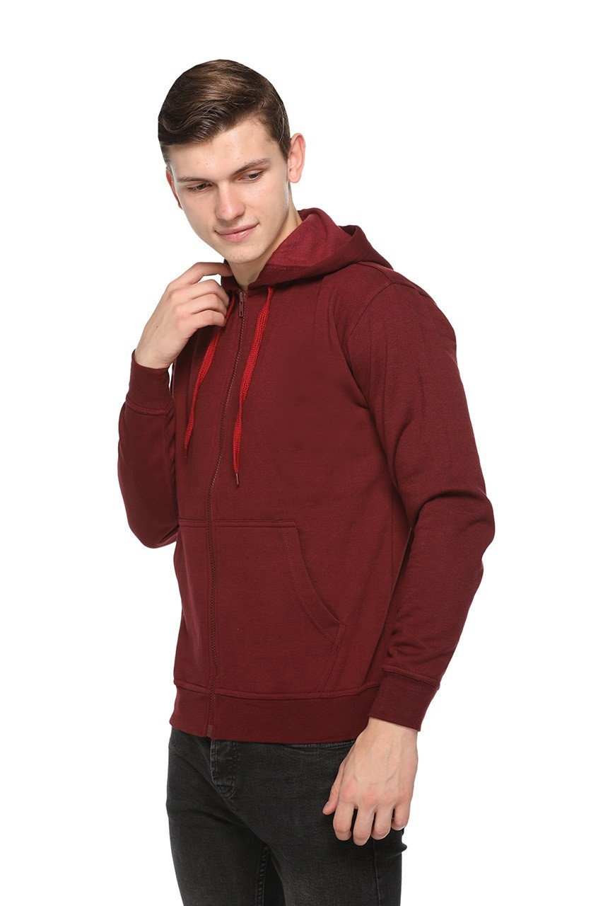 The full front zipper allows easy wear and layering, making it suitable for both indoor and outdoor use. Featuring an adjustable hood with drawstrings, ribbed cuffs, and a ribbed hem, this hoodie ensures a secure and comfortable fit while helping block out cold air. The deep maroon color adds a classy and modern look, making it easy to pair with jeans, joggers, or track pants for casual outings, travel, or lounging.