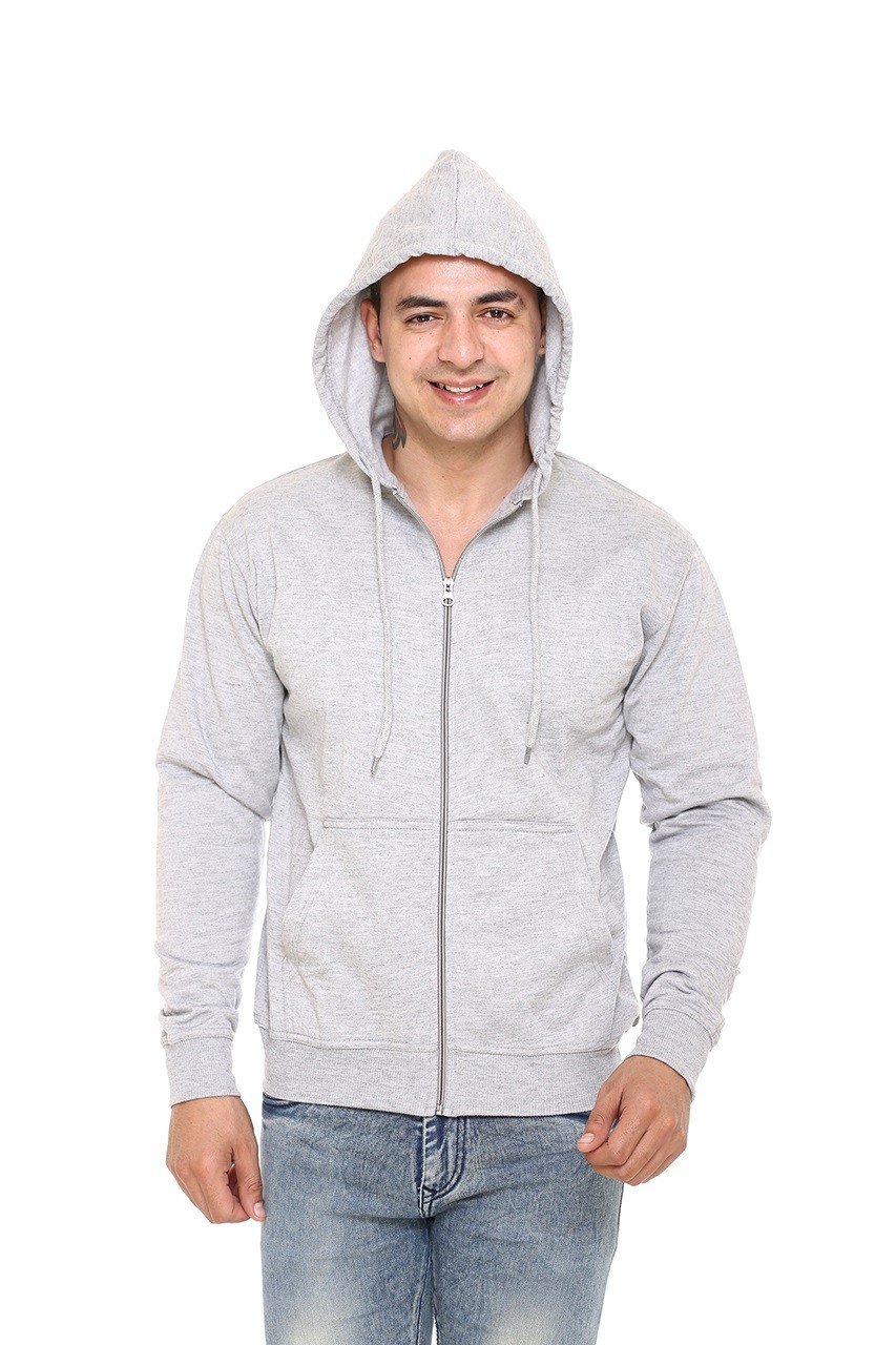 The light grey color provides a modern, clean, and versatile look that pairs effortlessly with jeans, joggers, or casual trousers. Featuring a full front zipper, adjustable drawstring hood, and ribbed cuffs and hem, this hoodie ensures a snug fit while maintaining a sleek and contemporary style.