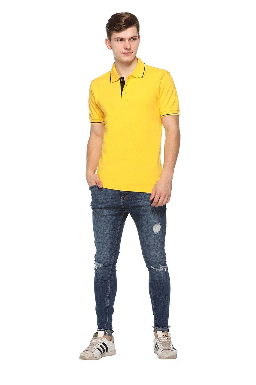 The vibrant yellow color, paired with single tipping on the collar and sleeves, gives a sporty, modern, and stylish touch. Its regular fit ensures freedom of movement while maintaining a structured and polished look, making it suitable for daily wear.