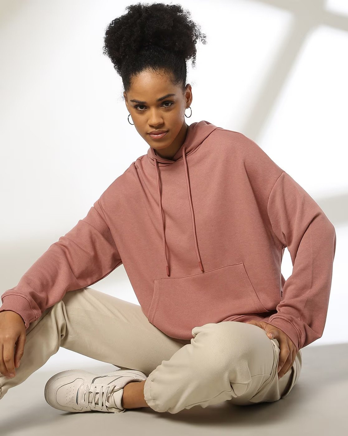 Featuring a classic hooded design with adjustable drawstrings, this hoodie combines practicality with a trendy look. Its soft peach color adds a feminine, refreshing, and youthful vibe, making it easy to pair with jeans, leggings, joggers, or skirts for a chic and casual outfit.