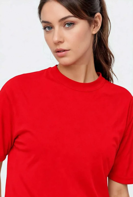 The vibrant red color adds a bold, energetic, and fashionable appeal, making it a standout piece in any wardrobe. It pairs effortlessly with jeans, skirts, joggers, shorts, or layered outfits. High-quality stitching, smooth finishing, and excellent color retention guarantee durability and shape stability even after multiple washes. As a reliable manufacturer, we focus on strict quality control, consistent sizing, and scalable bulk production for fashion brands, wholesalers, retailers, and private labels.
