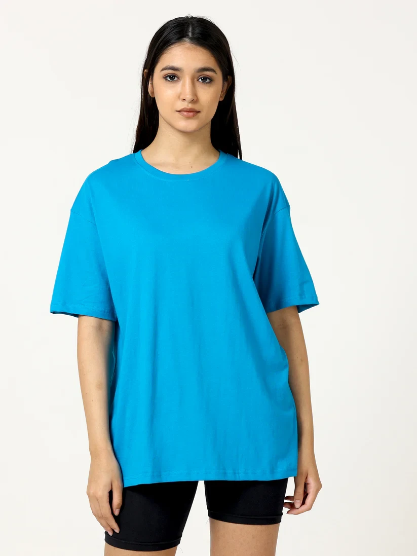 Designed with a modern oversized fit, it creates a trendy silhouette that pairs effortlessly with jeans, leggings, shorts, joggers, or skirts. The fresh sky blue color adds a calm, refreshing, and youthful vibe, making it a must-have for contemporary casual wardrobes.