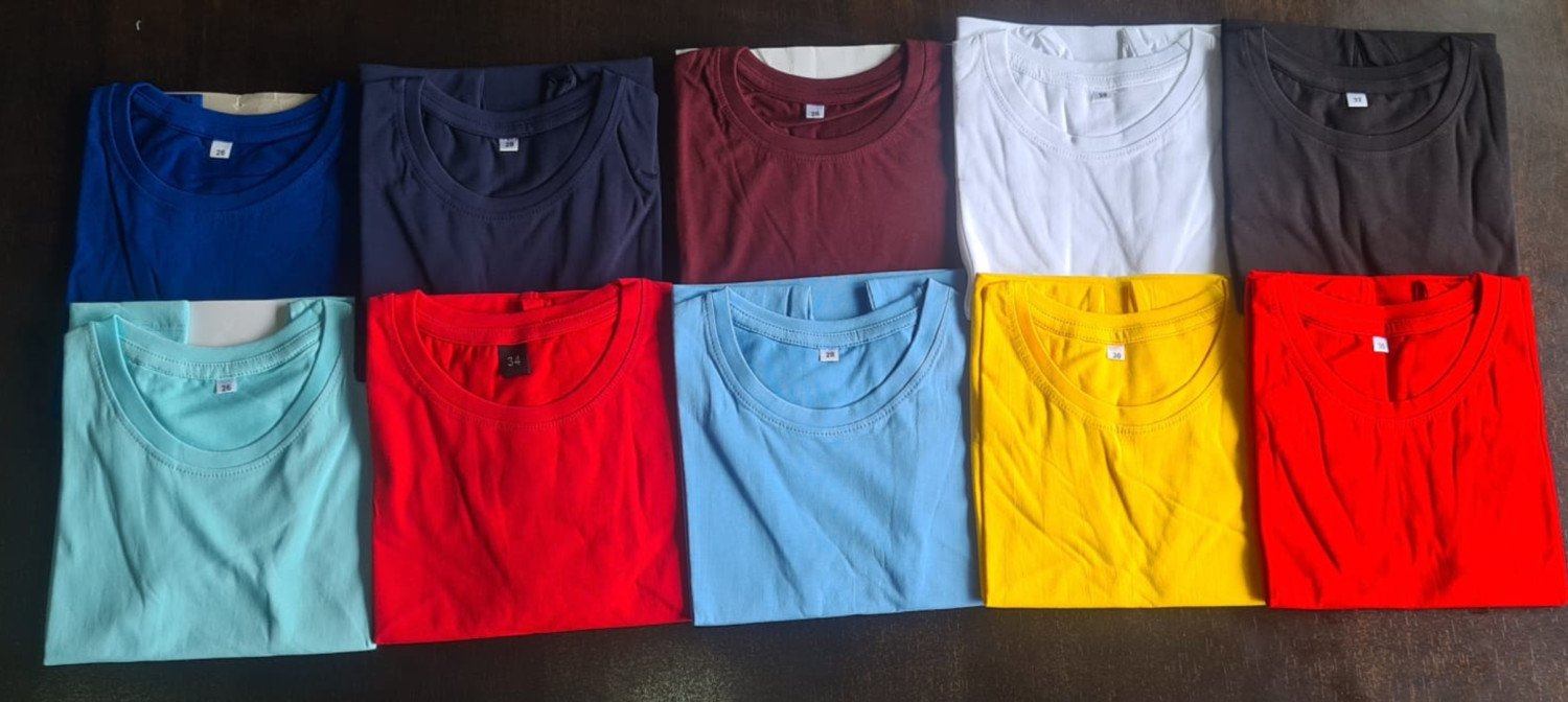 Featuring a classic round neck design and reinforced stitching, this T-shirt offers a snug yet flexible fit. The smooth finish and vibrant colors make it ideal for layering, pairing with shorts, jeans, or skirts, and for customization with prints or embroidery.
