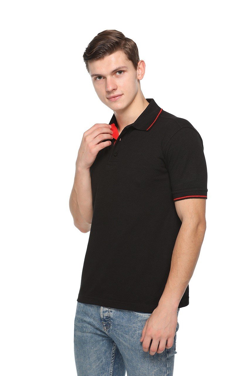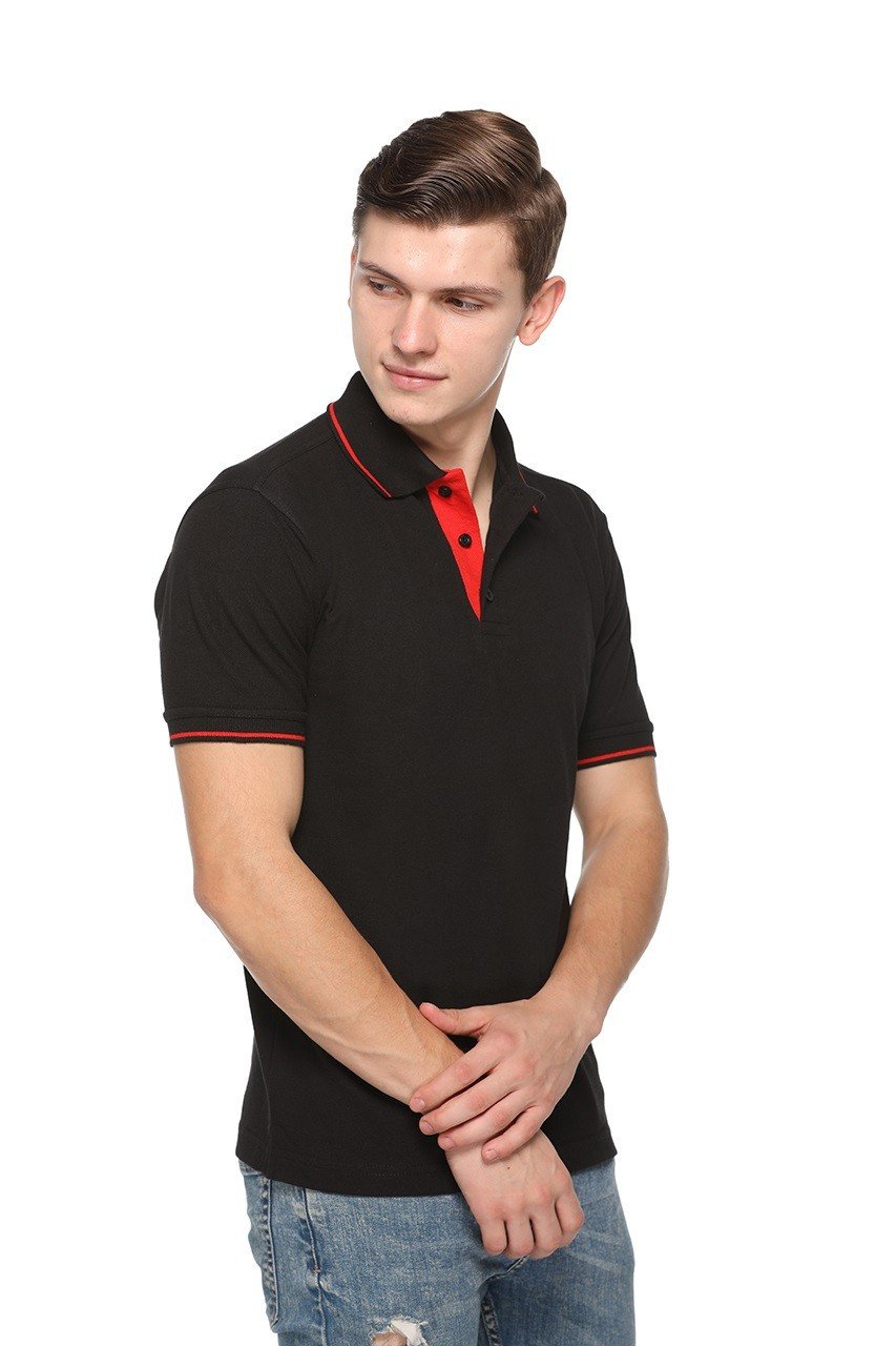 The classic black base color paired with red ribbed single tipping on the collar and sleeves creates a sporty yet refined look that makes a bold style statement. Its regular fit offers freedom of movement while maintaining a structured and polished appearance.