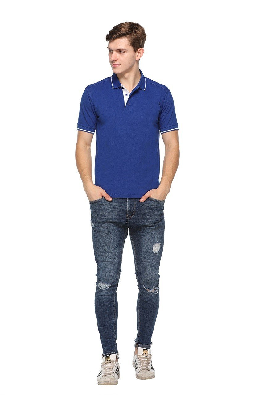 The rich royal blue color paired with single tipping on the collar and sleeves adds a modern, sporty, and stylish touch. Its regular fit allows freedom of movement while maintaining a structured and polished look, making it suitable for daily wear.