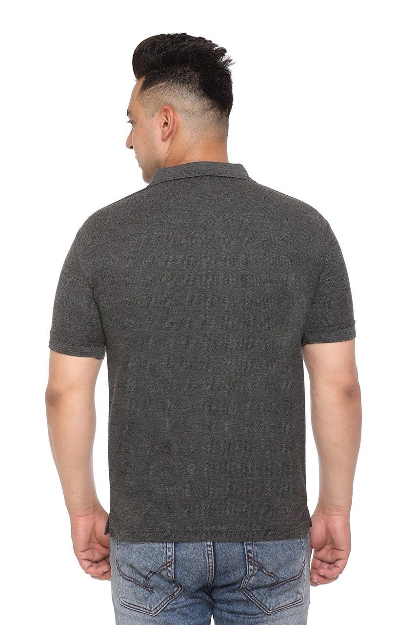 The versatile charcoal grey color provides a sleek and modern look that pairs effortlessly with jeans, chinos, or trousers for smart-casual or everyday wear. The classic polo collar with a button placket adds a polished and timeless appearance, making it suitable for multiple occasions.