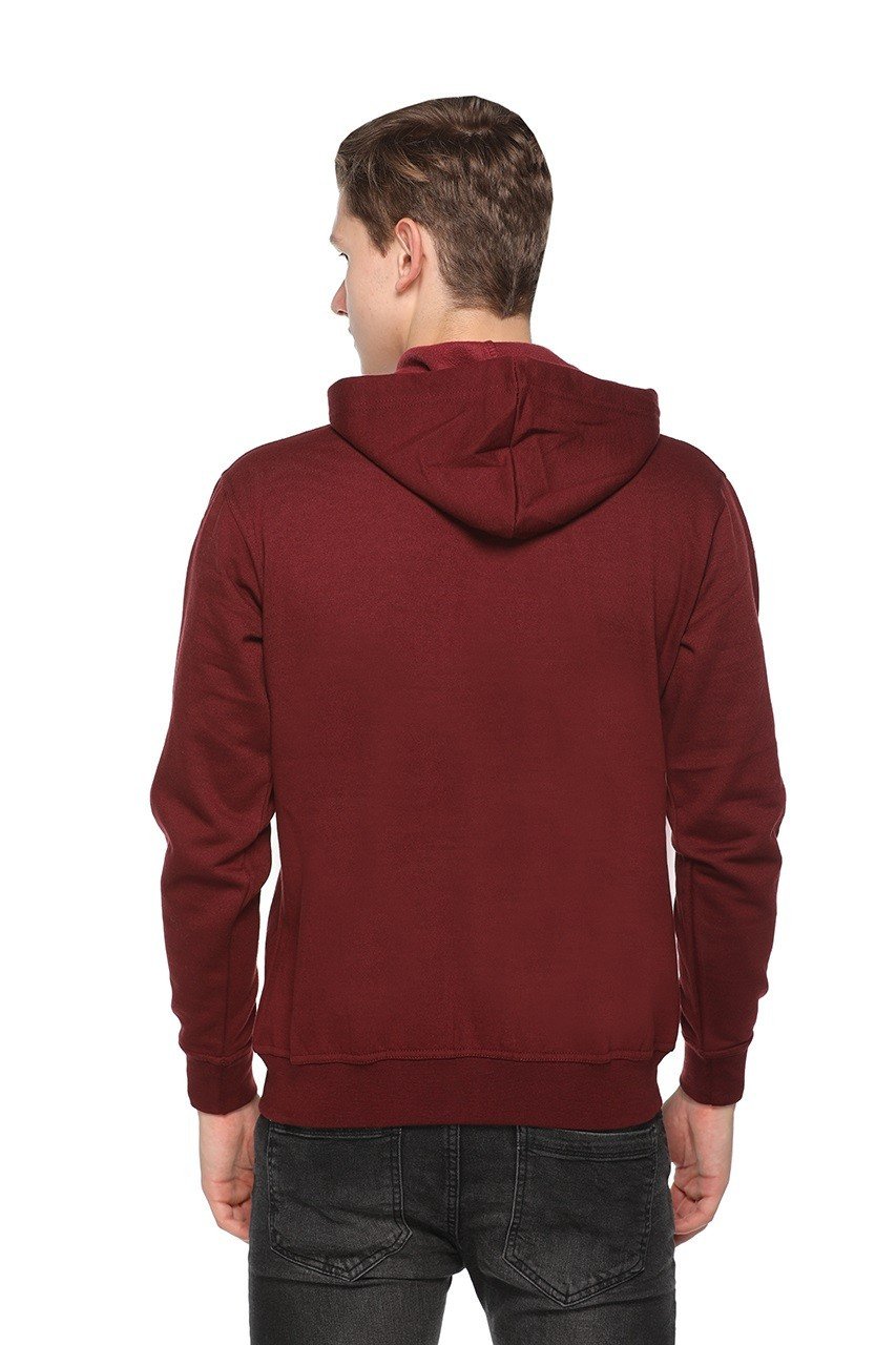 The full front zipper allows easy wear and layering, making it suitable for both indoor and outdoor use. Featuring an adjustable hood with drawstrings, ribbed cuffs, and a ribbed hem, this hoodie ensures a secure and comfortable fit while helping block out cold air. The deep maroon color adds a classy and modern look, making it easy to pair with jeans, joggers, or track pants for casual outings, travel, or lounging.