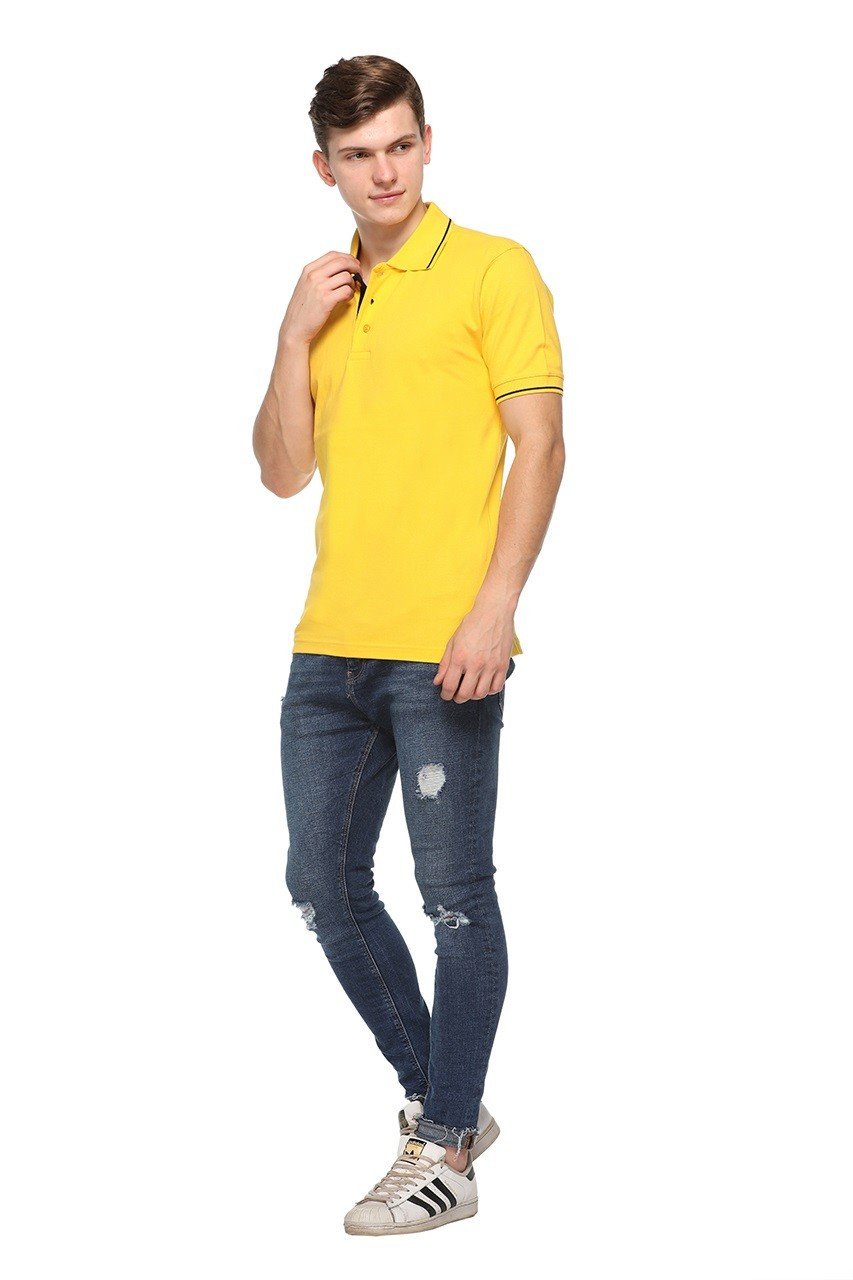 The vibrant yellow color, paired with single tipping on the collar and sleeves, gives a sporty, modern, and stylish touch. Its regular fit ensures freedom of movement while maintaining a structured and polished look, making it suitable for daily wear.