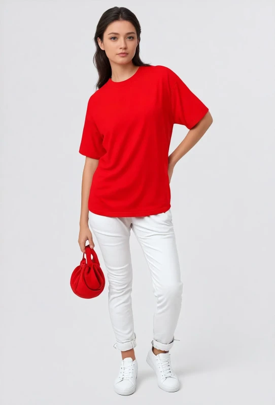 The vibrant red color adds a bold, energetic, and fashionable appeal, making it a standout piece in any wardrobe. It pairs effortlessly with jeans, skirts, joggers, shorts, or layered outfits. High-quality stitching, smooth finishing, and excellent color retention guarantee durability and shape stability even after multiple washes. As a reliable manufacturer, we focus on strict quality control, consistent sizing, and scalable bulk production for fashion brands, wholesalers, retailers, and private labels.