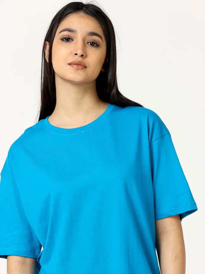 Designed with a modern oversized fit, it creates a trendy silhouette that pairs effortlessly with jeans, leggings, shorts, joggers, or skirts. The fresh sky blue color adds a calm, refreshing, and youthful vibe, making it a must-have for contemporary casual wardrobes.